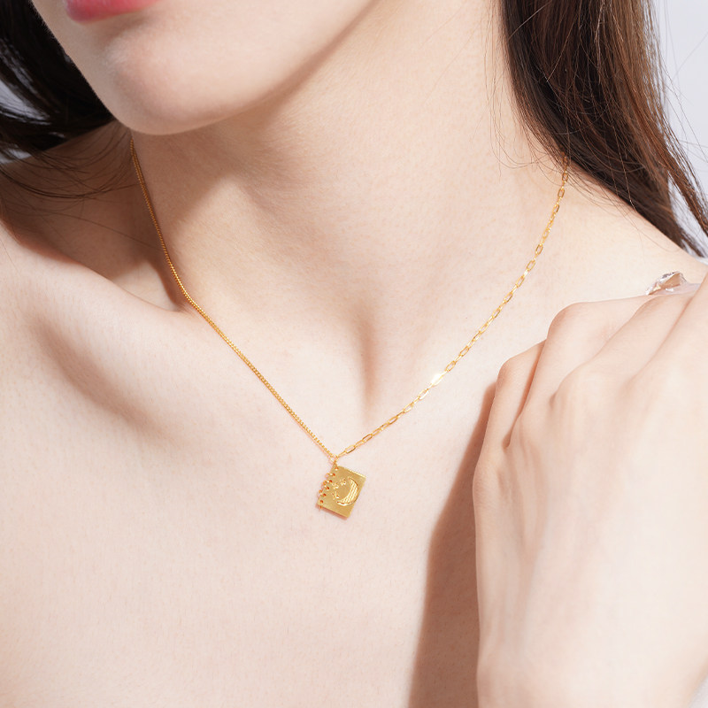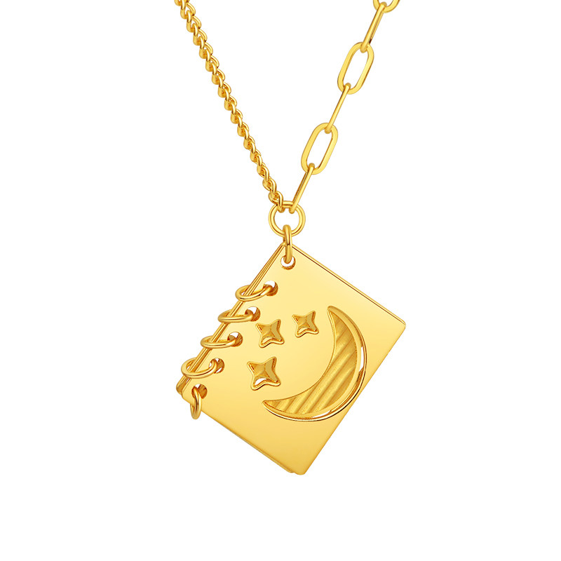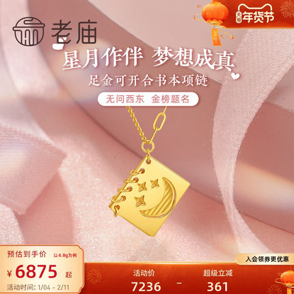 老庙黄金足金999星星月亮5G双面可开合书本项链甜美童话时尚礼物