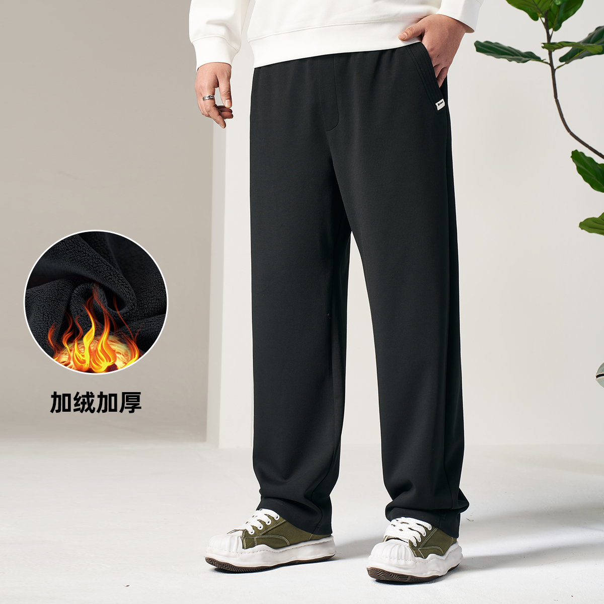 黑劲大码男装菱形加裆裤冬季加绒胖子男加肥加大宽松休闲弯刀卫裤