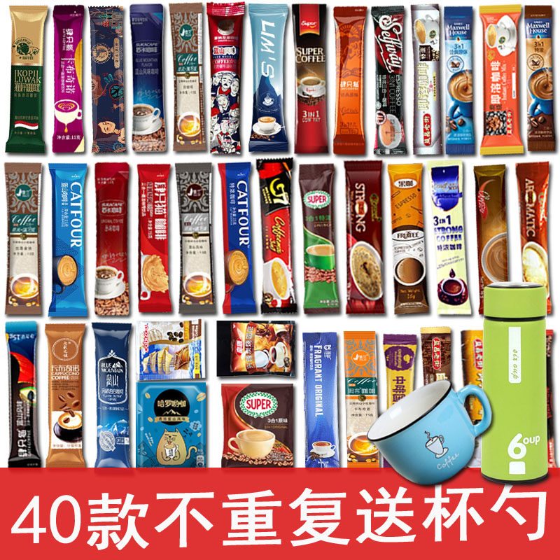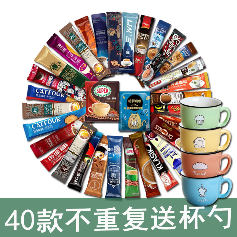 进口世界咖啡组合合集国产混装速溶条装三合一提神多口味拿铁特浓