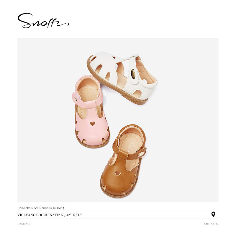 Snoffy斯纳菲女童凉鞋23年夏季新款爱心镂空软底防滑幼童公主鞋子