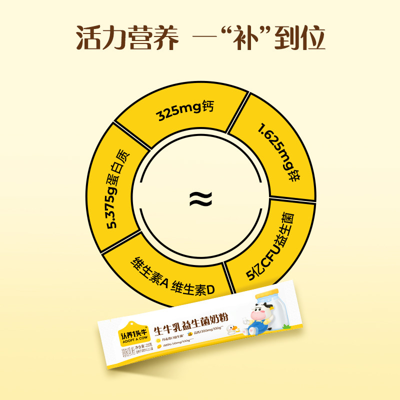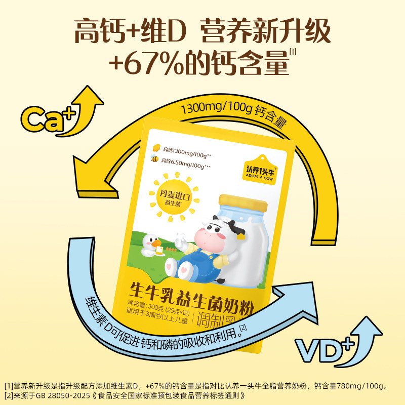 【百亿补贴】认养一头牛生牛乳益生菌奶粉高钙营养乳蛋白奶粉