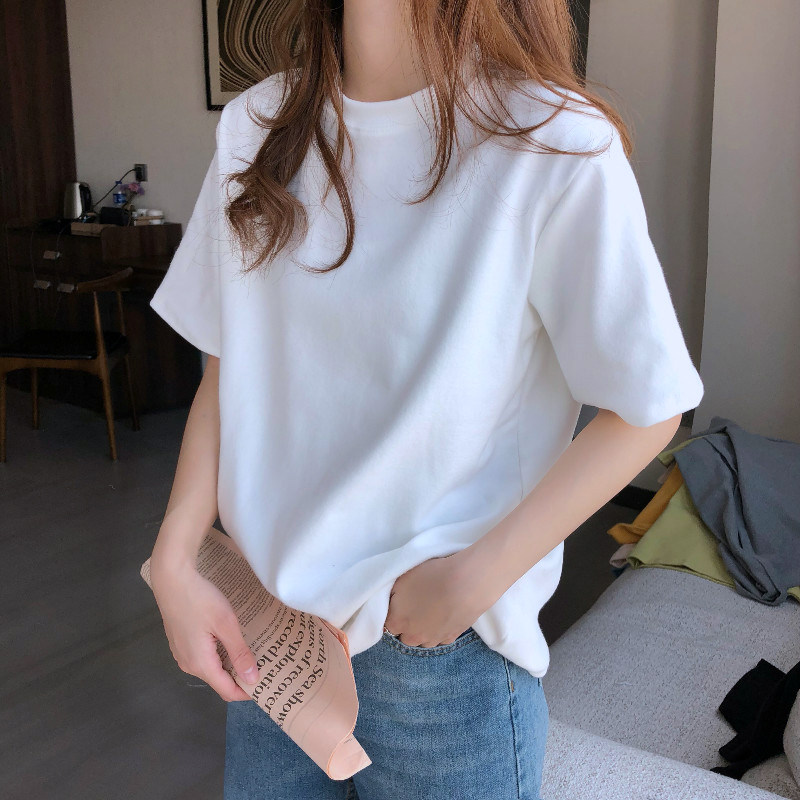 白色t恤女短袖纯棉2025夏季新款女装百搭中袖纯白大码宽松上衣服