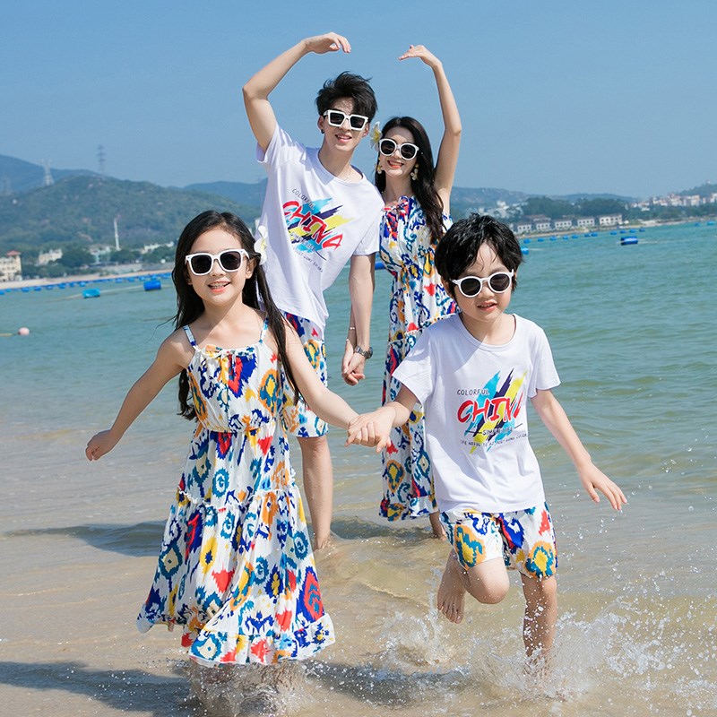 海边度假亲子装夏装父子母女连衣裙沙滩一家三口四口三亚旅游拍照