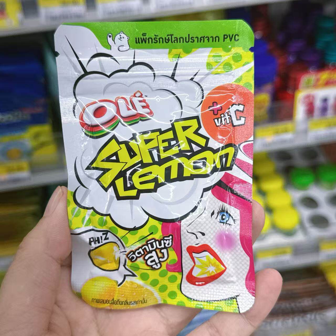 泰国711代购ole'超级柠檬味维C草莓奇异果薄荷球糖休闲零食