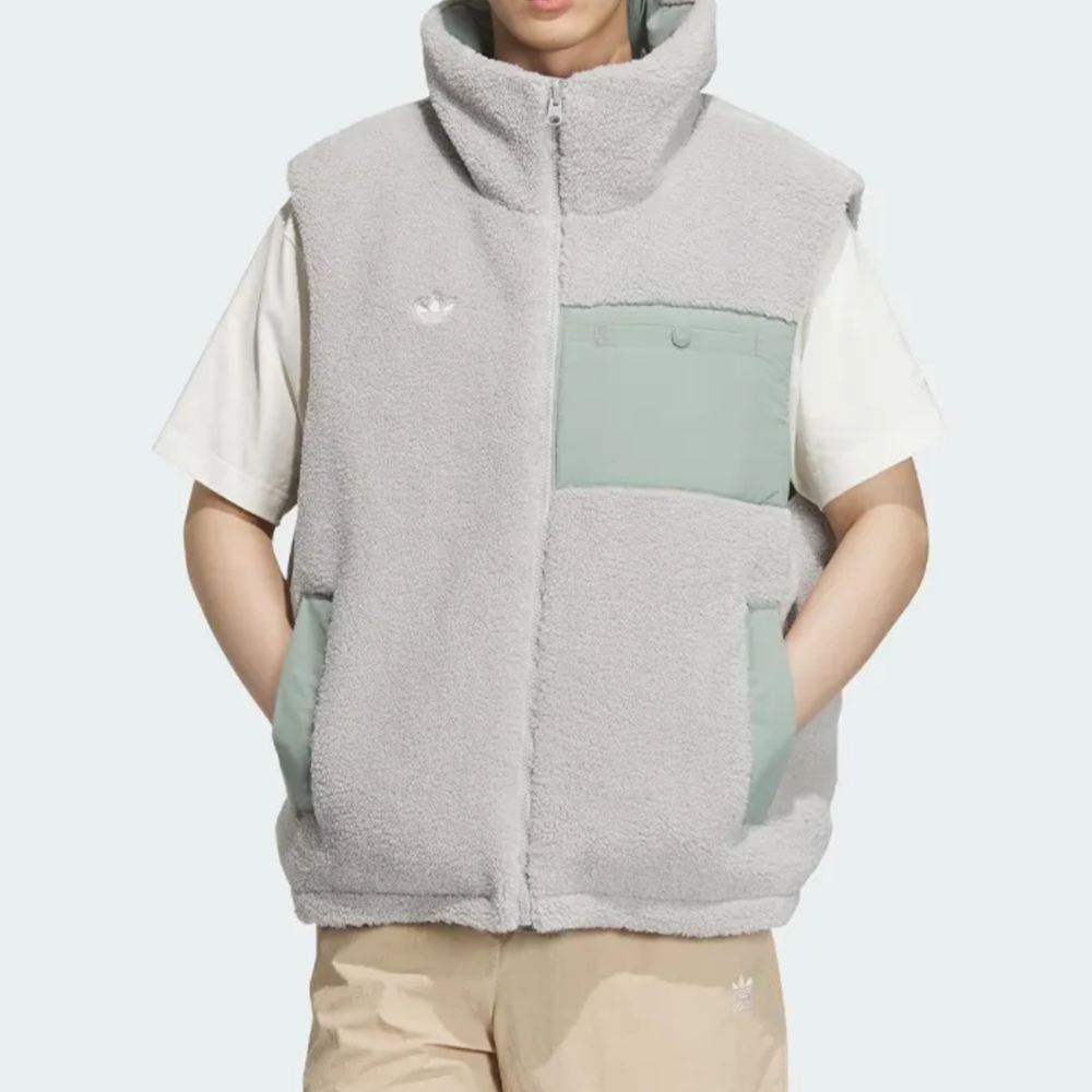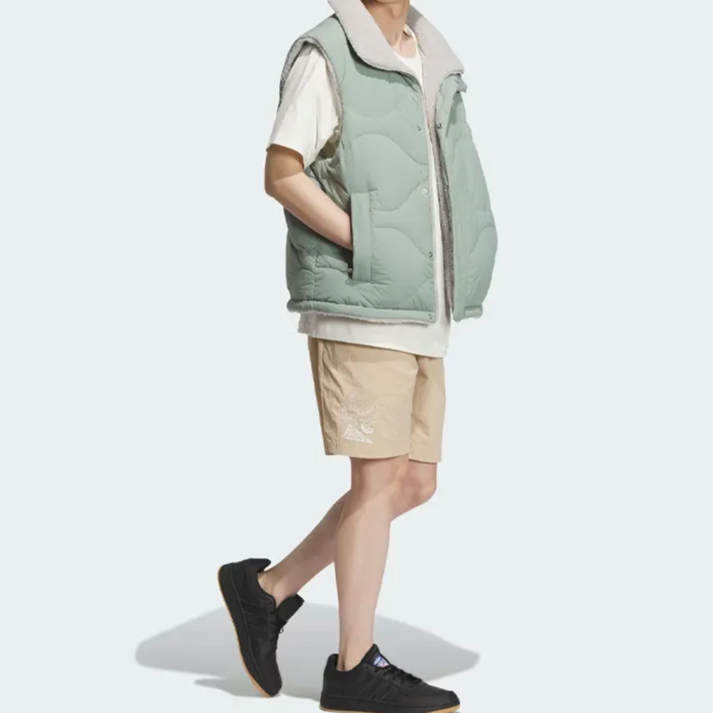 阿迪达斯三叶草男子羽绒服马甲冬季双面穿立领保暖毛绒背心IM8439