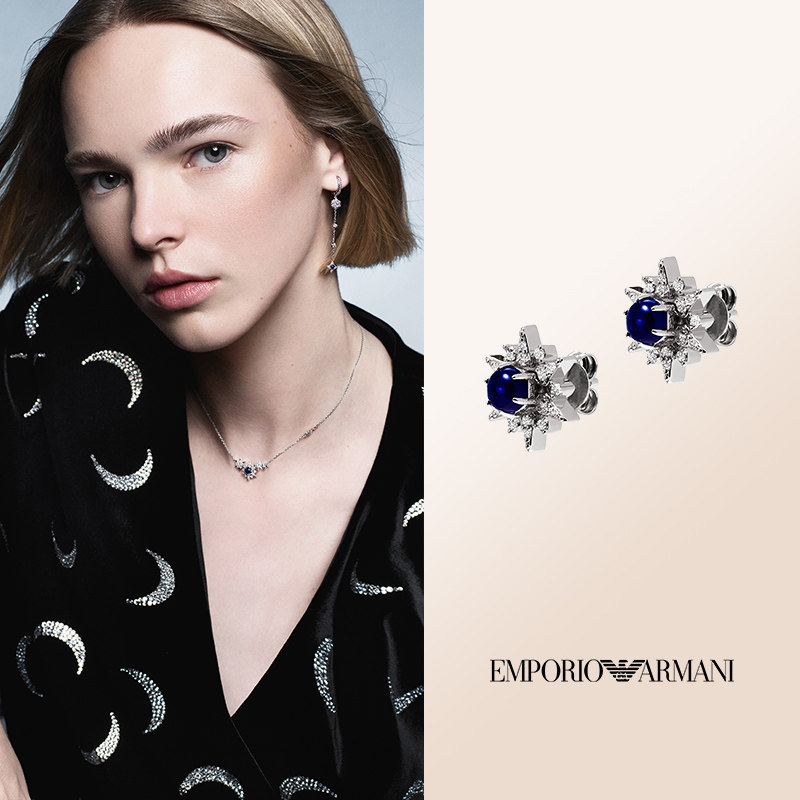 Armani阿玛尼耳钉女 夜空蓝星月系列满天星纯银首饰生日礼物女友