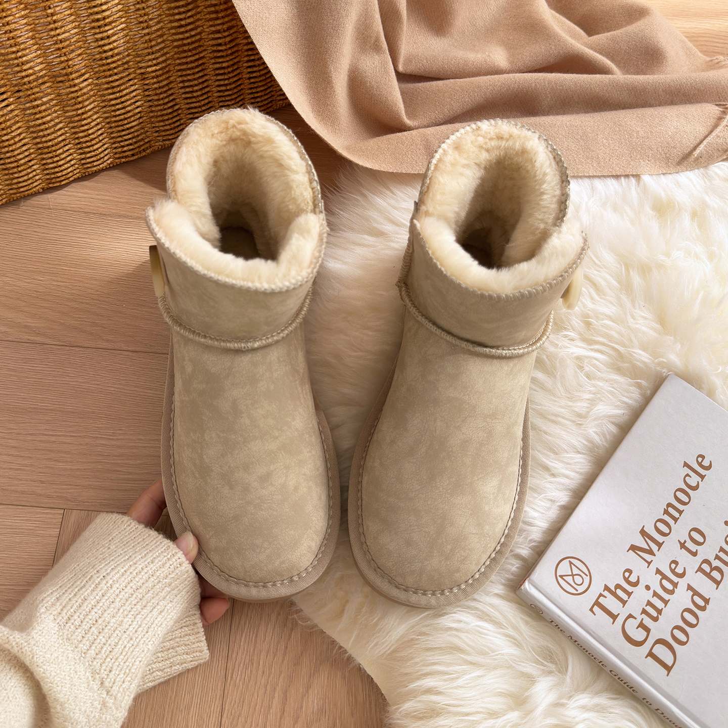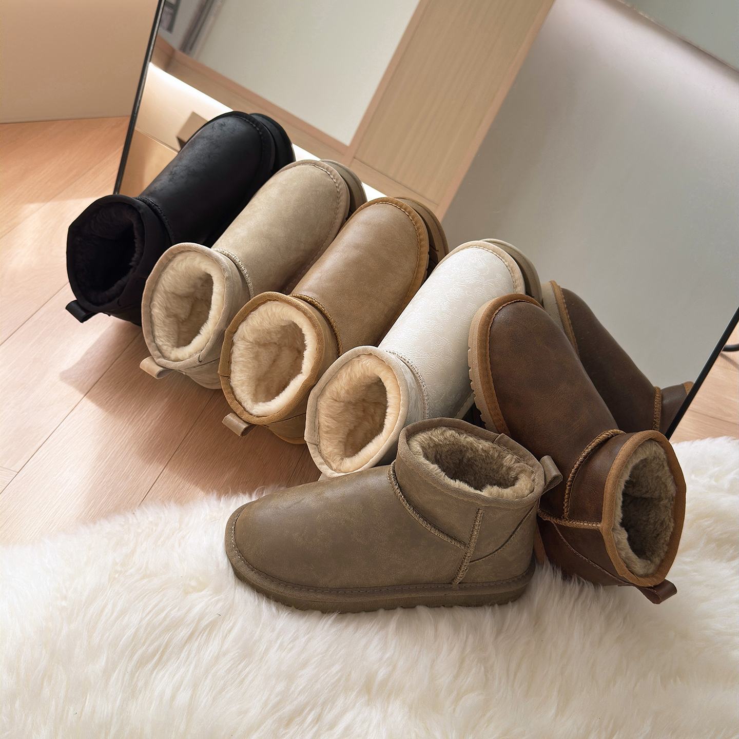 2025新款皮面防水雪地靴女周冬雨同款冬季加厚绒保暖短筒防滑棉鞋