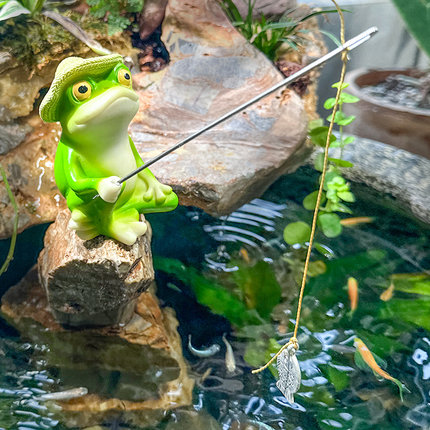 户外庭院花园装饰品摆件鱼池假山造景树脂小青蛙钓鱼创意景观雕塑