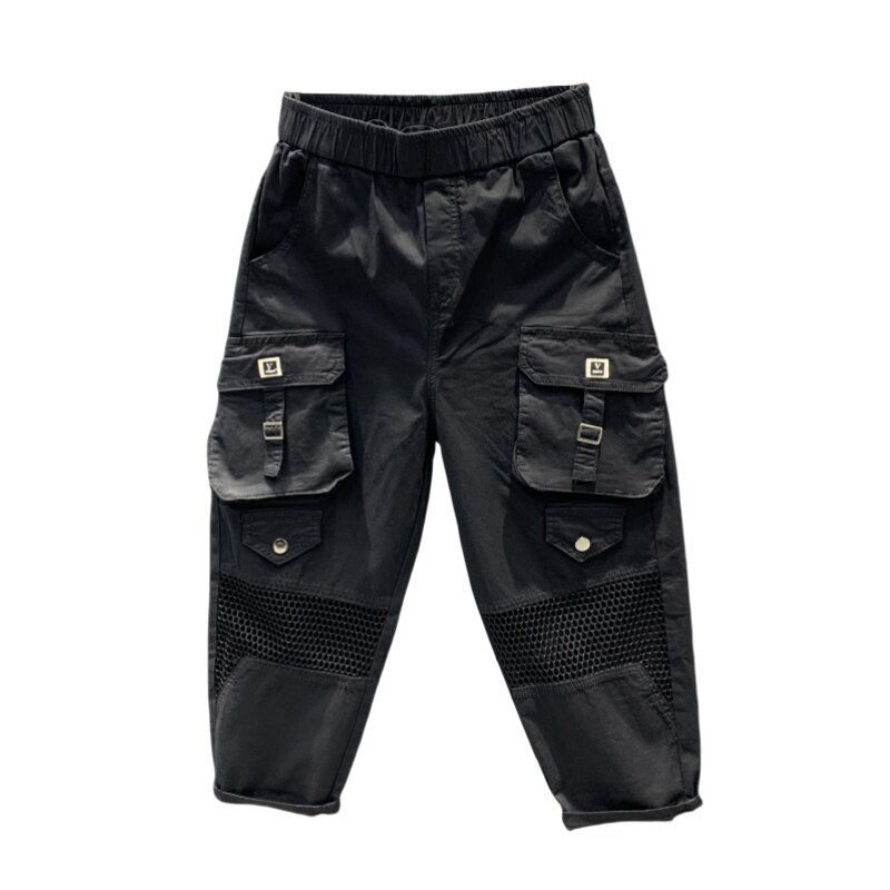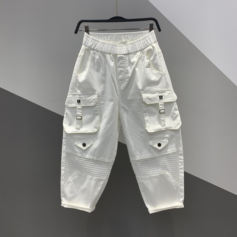 2026春季新款时尚大口袋渔网镂空街头老爹牛仔裤宽松八分哈伦裤女