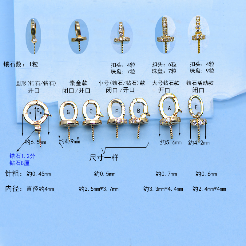 奶嘴18K金素金钻石锆石款吊坠闭口卡扣活扣款珍珠空托百搭DIY配件