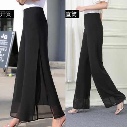雪纺冰丝阔腿裤女2021开衩甩裙裤