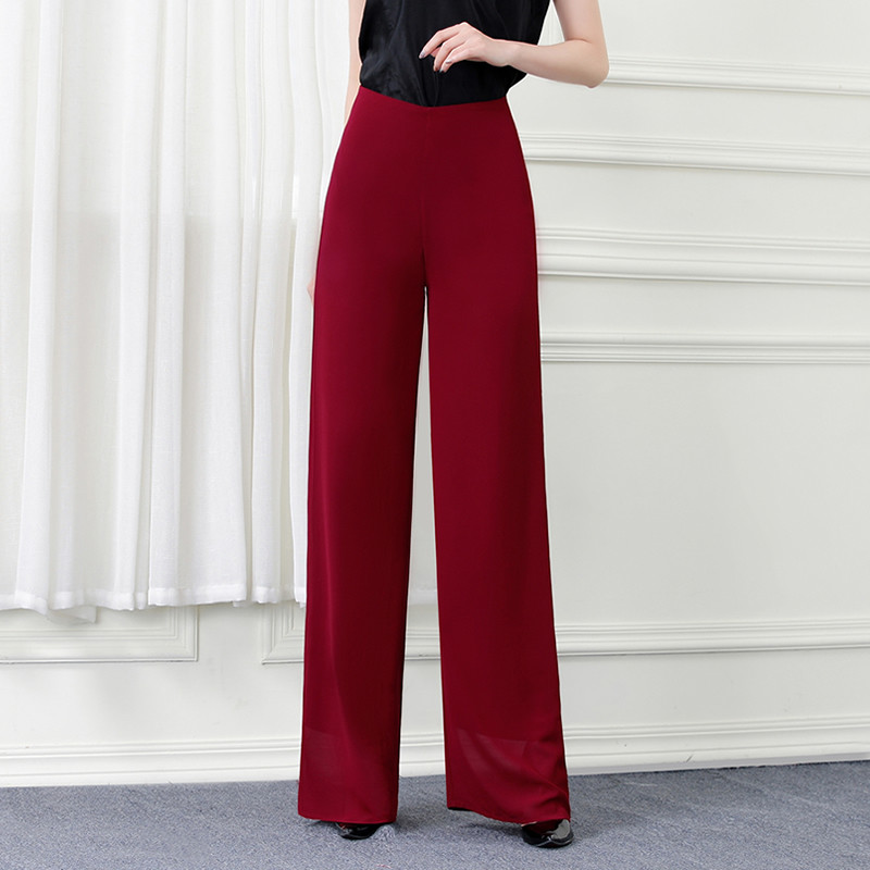 雪纺冰丝阔腿裤女夏2022新款宽松百褶坠感高腰垂感直筒开衩甩裙裤