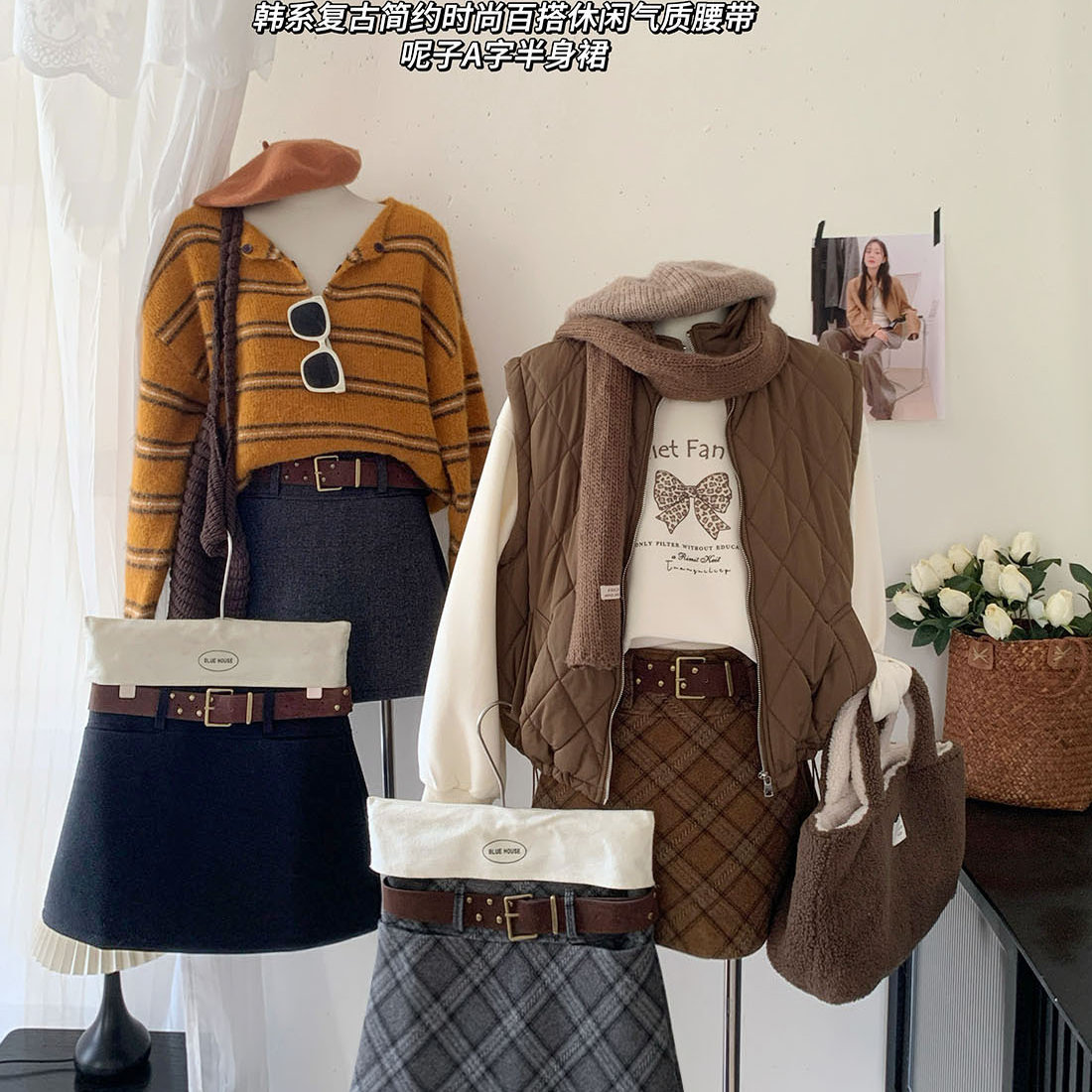 复古菱形格子羊毛毛呢百搭短裙女秋冬净版高腰包臀a字显瘦半身裙