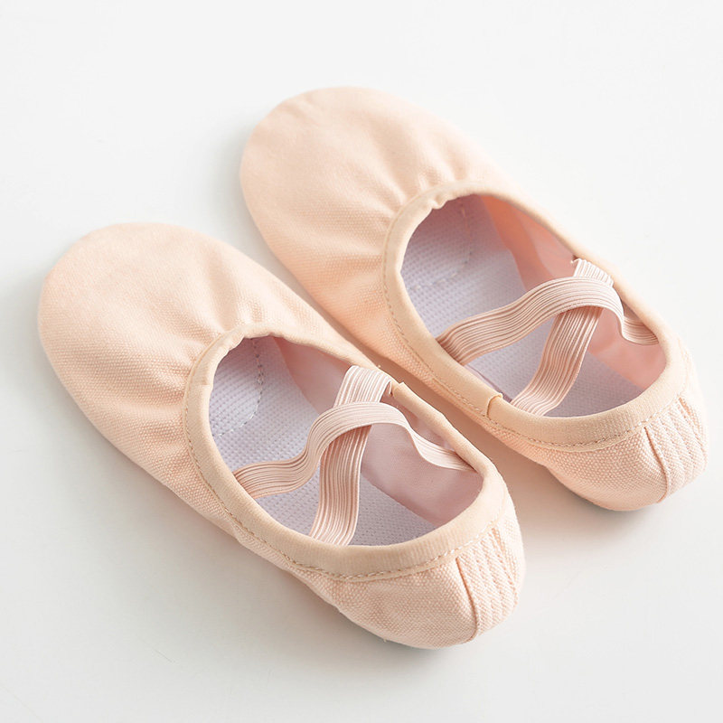 TING陈婷儿童芭蕾舞蹈软底练功鞋纯棉帆布猫爪粉色跳舞鞋无抽绳女