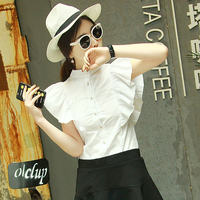 2022夏装新款衬衫 女百搭飞飞袖时尚木耳边简约气质显瘦无袖上衣