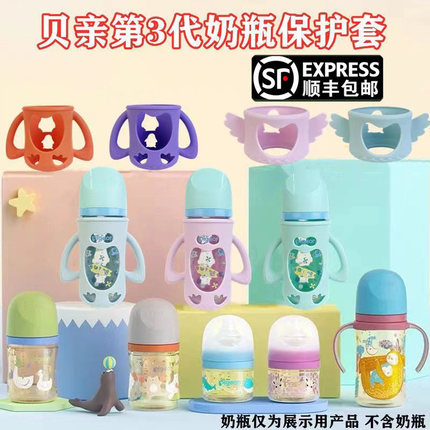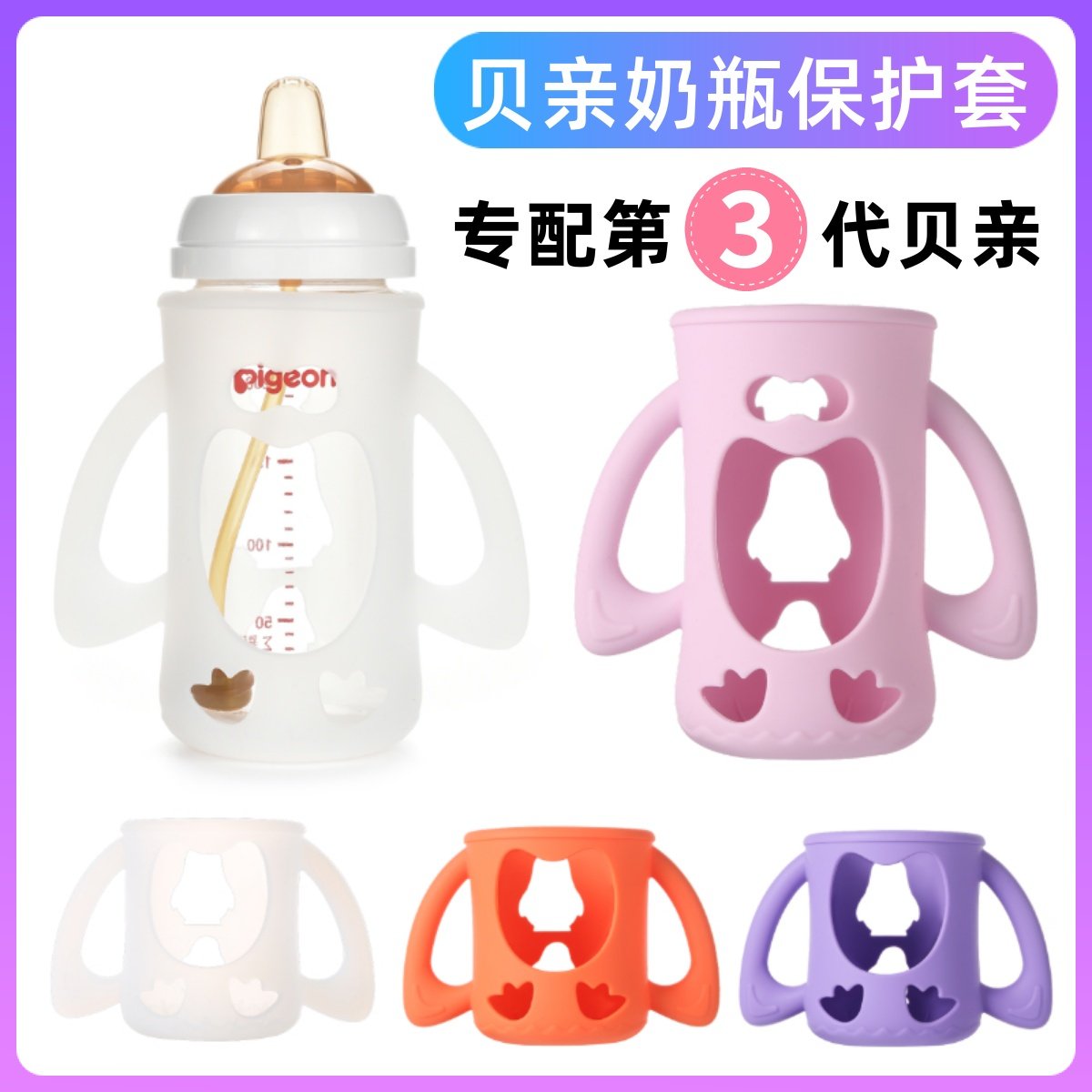 通用贝亲奶瓶保护套第三代玻璃奶瓶宽口径硅胶手柄防摔隔热套手把