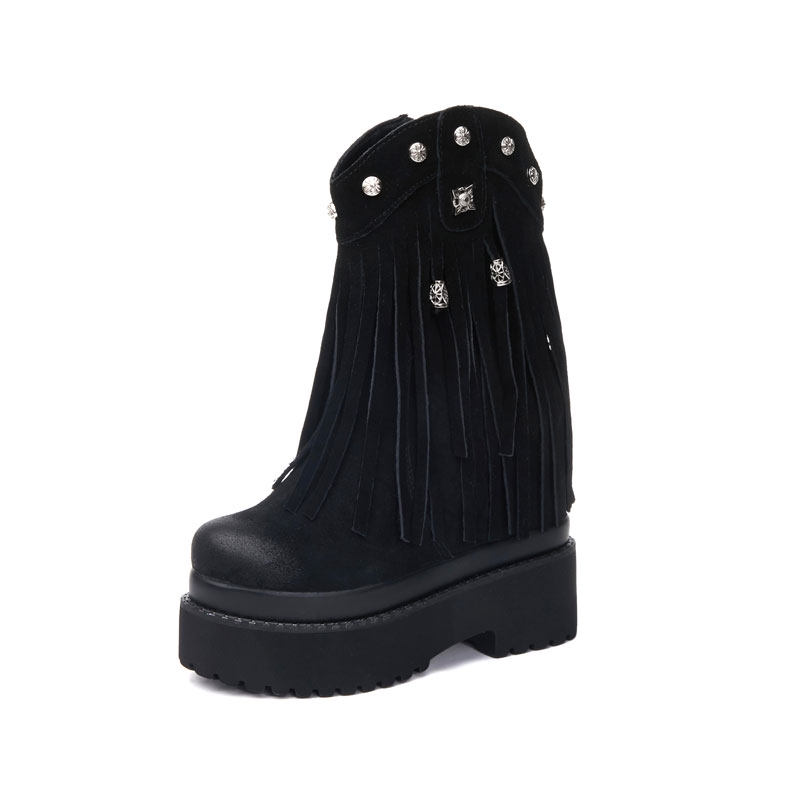 震地王高跟12cm马丁靴女2025秋季单靴英伦厚底内增高时尚流苏短靴