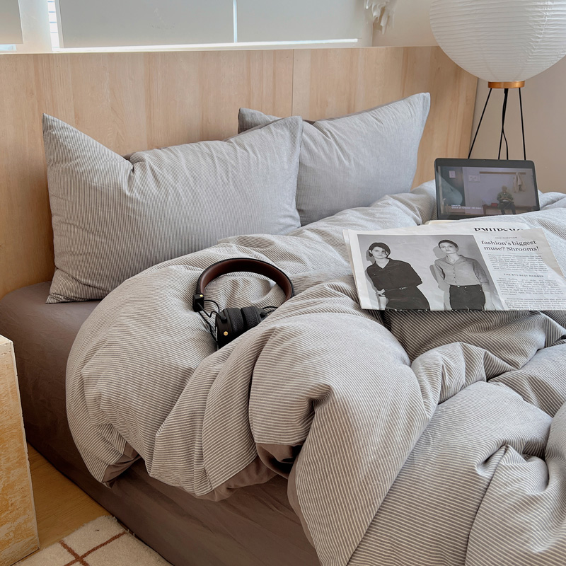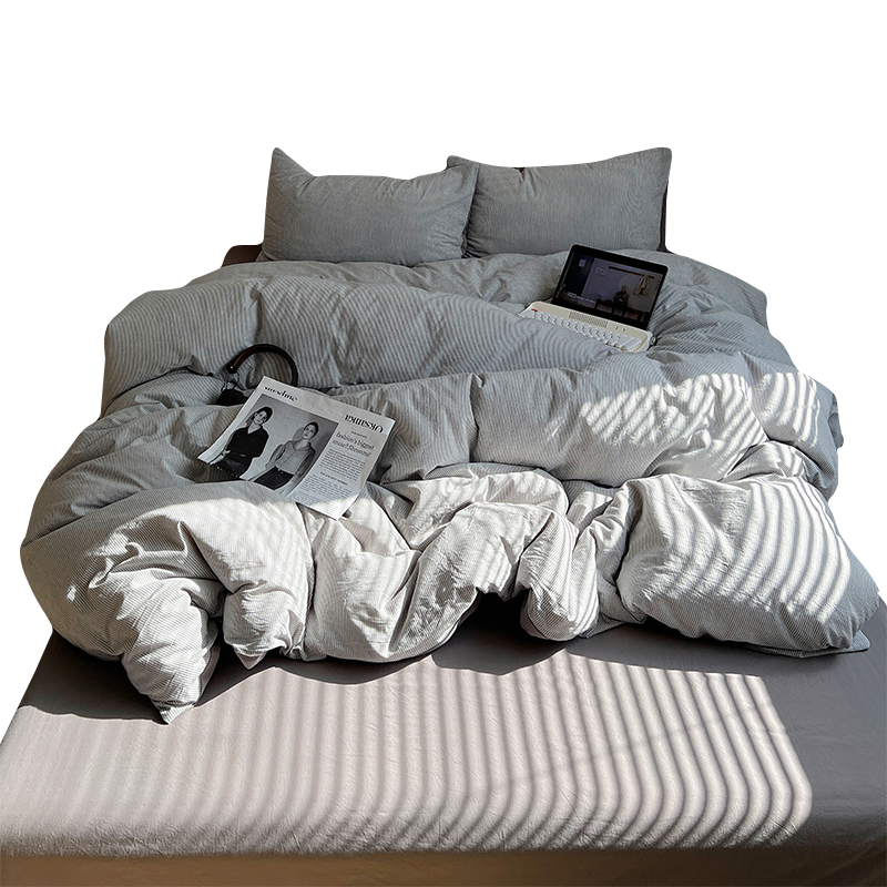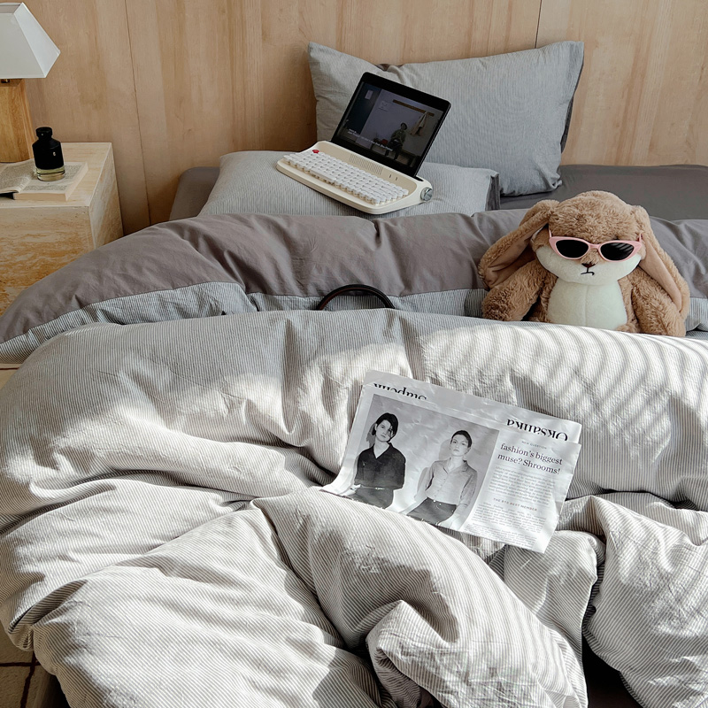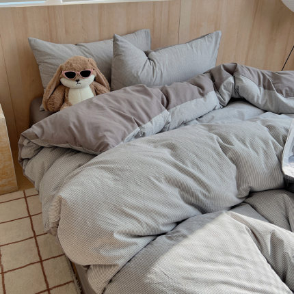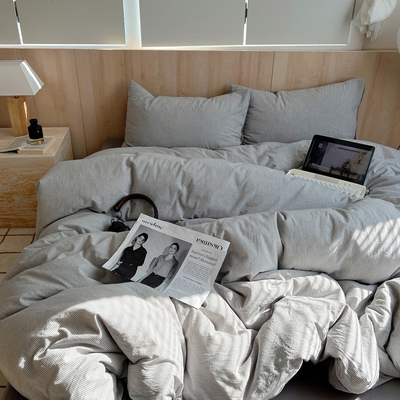 简约细条纹纯棉水洗棉四件套全棉被套床笠床单宿舍三件套床上用品
