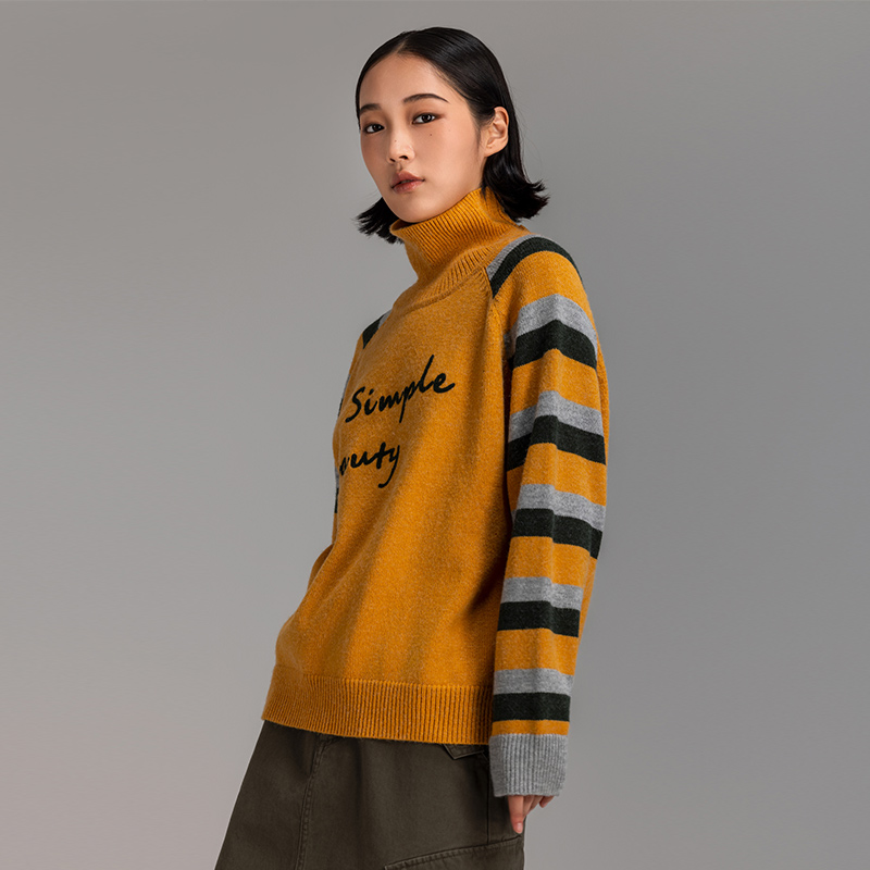 中和休闲宽松高领毛衣2023女士冬装套头针织衫复古长袖B64214631