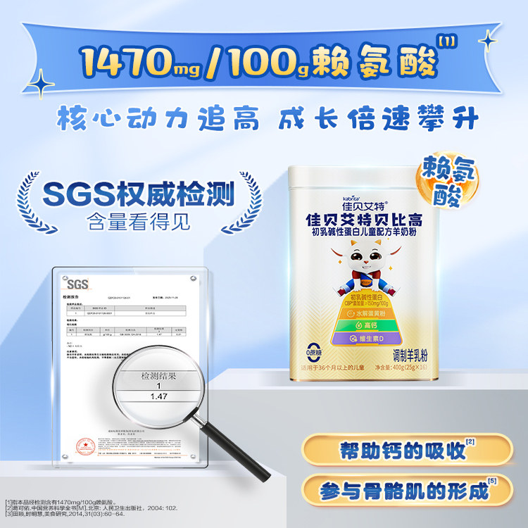 佳贝艾特贝比高400g儿童成长奶粉便携式袋装高钙羊奶粉3岁