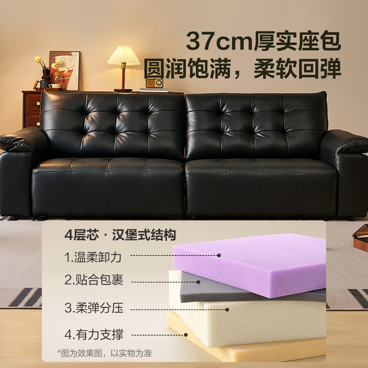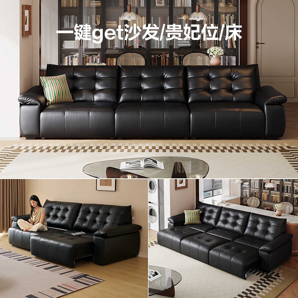 全友家居现代简约电动沙发床一体两用客厅2025新款黑色真皮沙发
