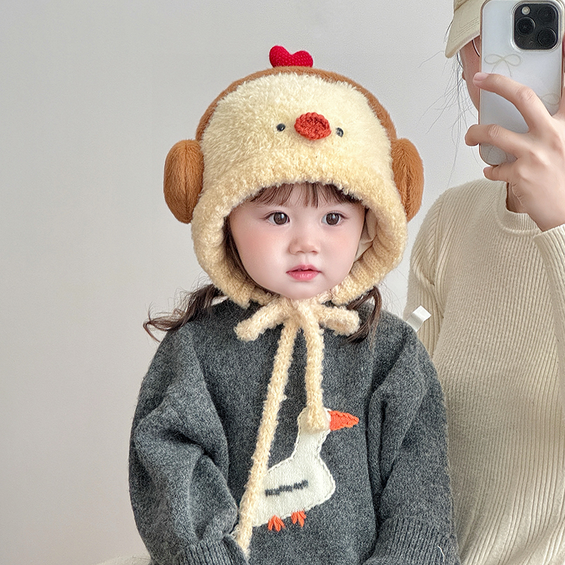 儿童可爱帽子秋冬季保暖加厚护耳毛绒帽男女宝宝防风针织毛线帽潮