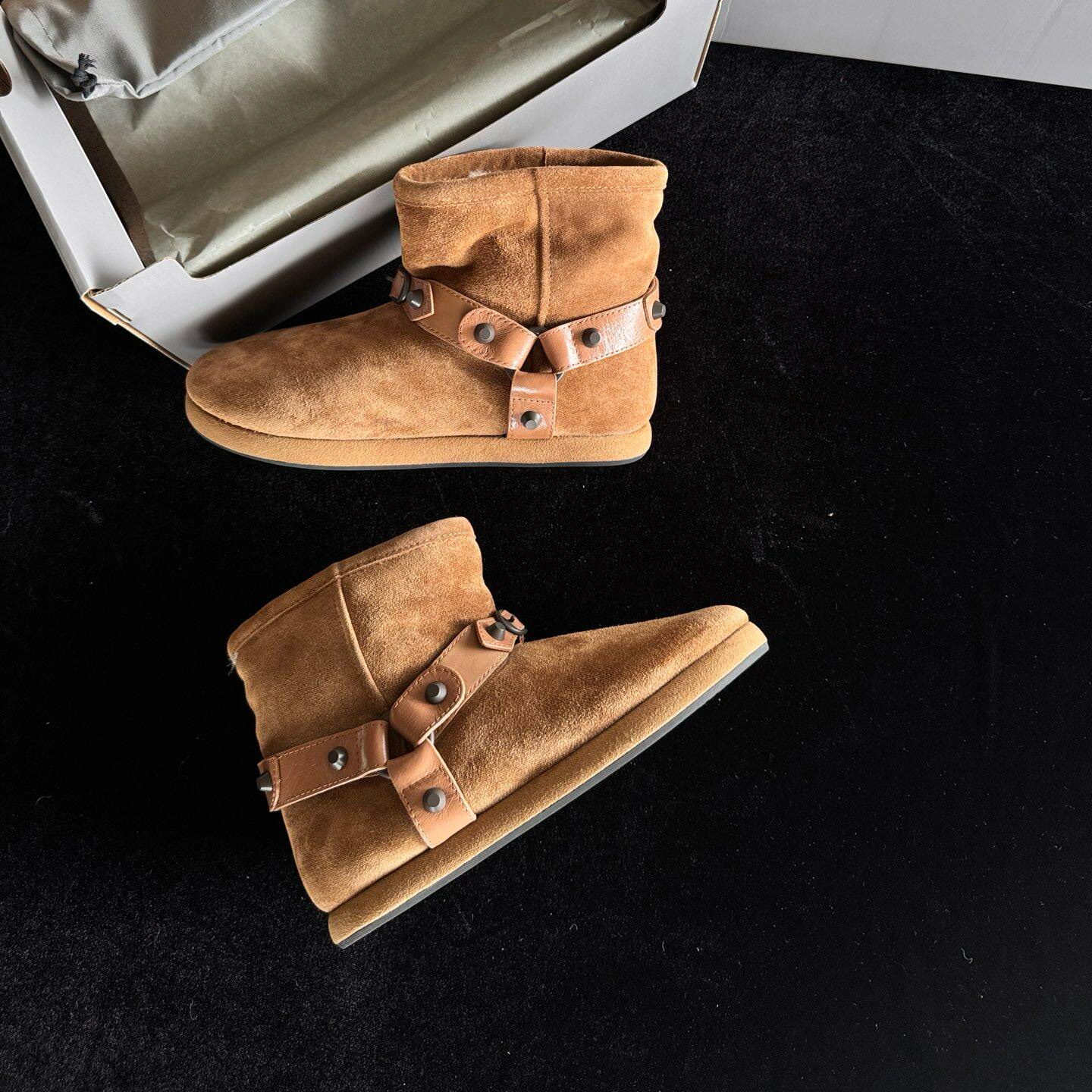 新款复古真皮雪地靴女冬季加绒加厚保暖棉鞋厚底防滑短筒马丁靴女