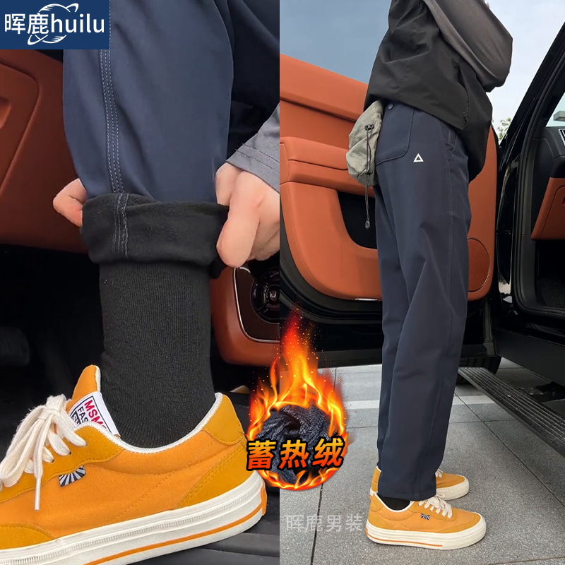 秋冬新款加绒男士三角标工装裤2025年宽松微锥户外登山冲锋裤子男