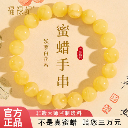 天然妖花蜜蜡手串女款男官方旗舰店高端俄料琥珀鸡油黄白花蜜手链