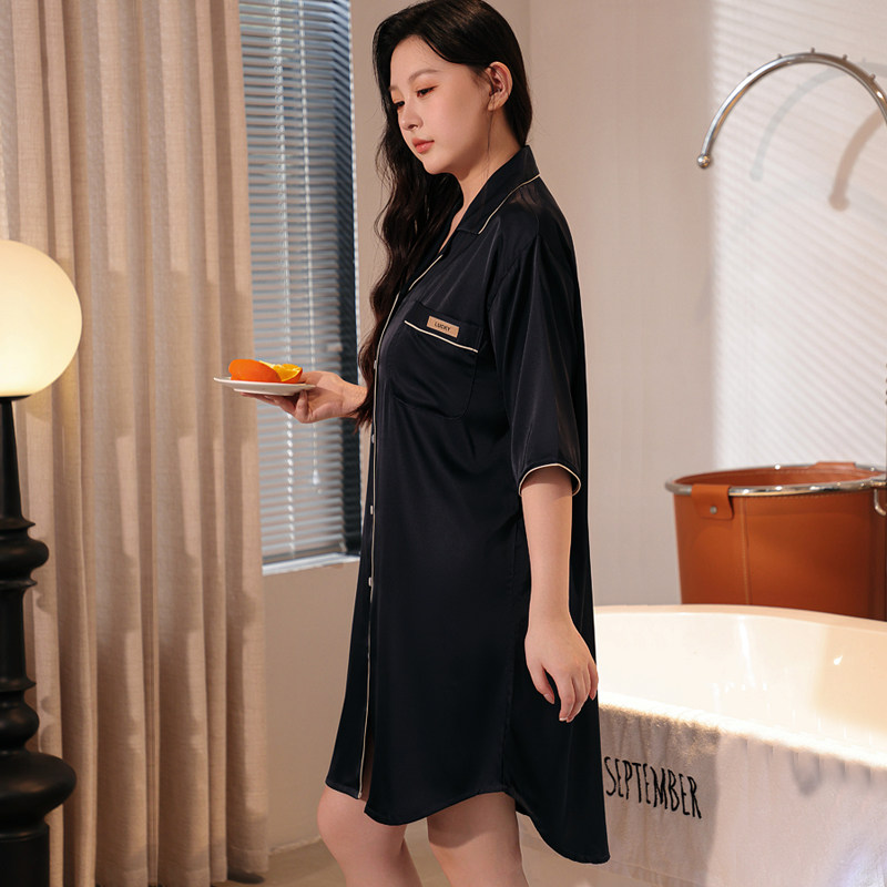冰丝夏季简约加肥加大码睡裙胖m
