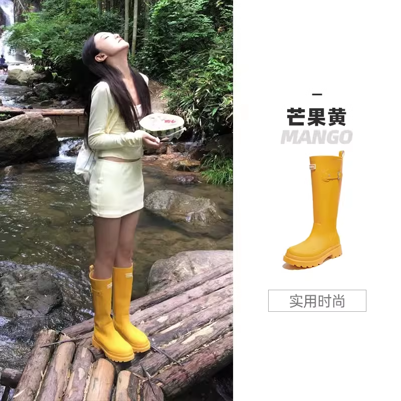 Camel骆驼雨靴红色战靴高颜值雨鞋女经典涉水鞋子防水防滑长筒靴