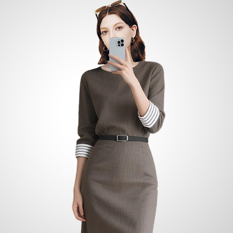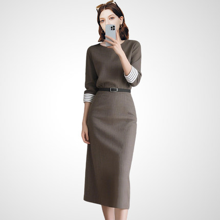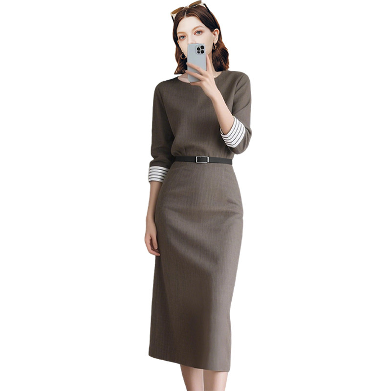 兰卡时尚修身包臀连衣裙女2025秋冬款职场通勤气质显高收腰中长裙
