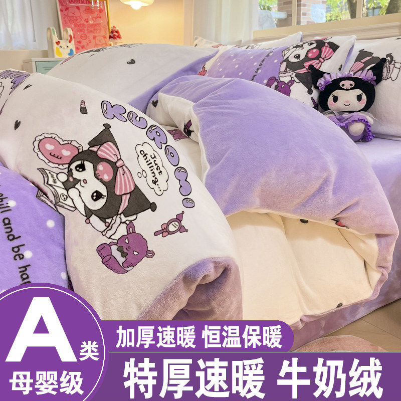 库洛米加厚牛奶珊瑚绒床上四件套冬季加绒公主床品三件套被套床单