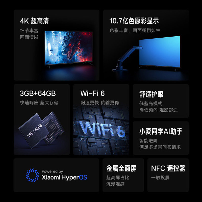 小米REDMI智能电视A Pro43英寸3+64GB存储4K超高清护眼平板电视机
