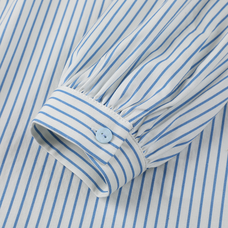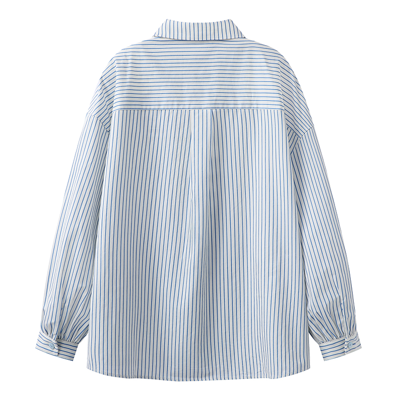 秋季时尚韩系女款长袖爱心口袋宽松衬衫蓝白条纹小众显瘦百搭衬衣