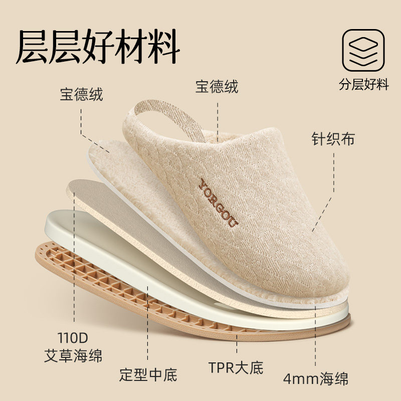 远港抗菌艾草棉拖鞋2026新款男士秋冬季防滑室内居家用保暖加绒女
