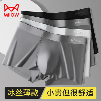 猫人冰丝莫代尔男士无痕抑菌短裤