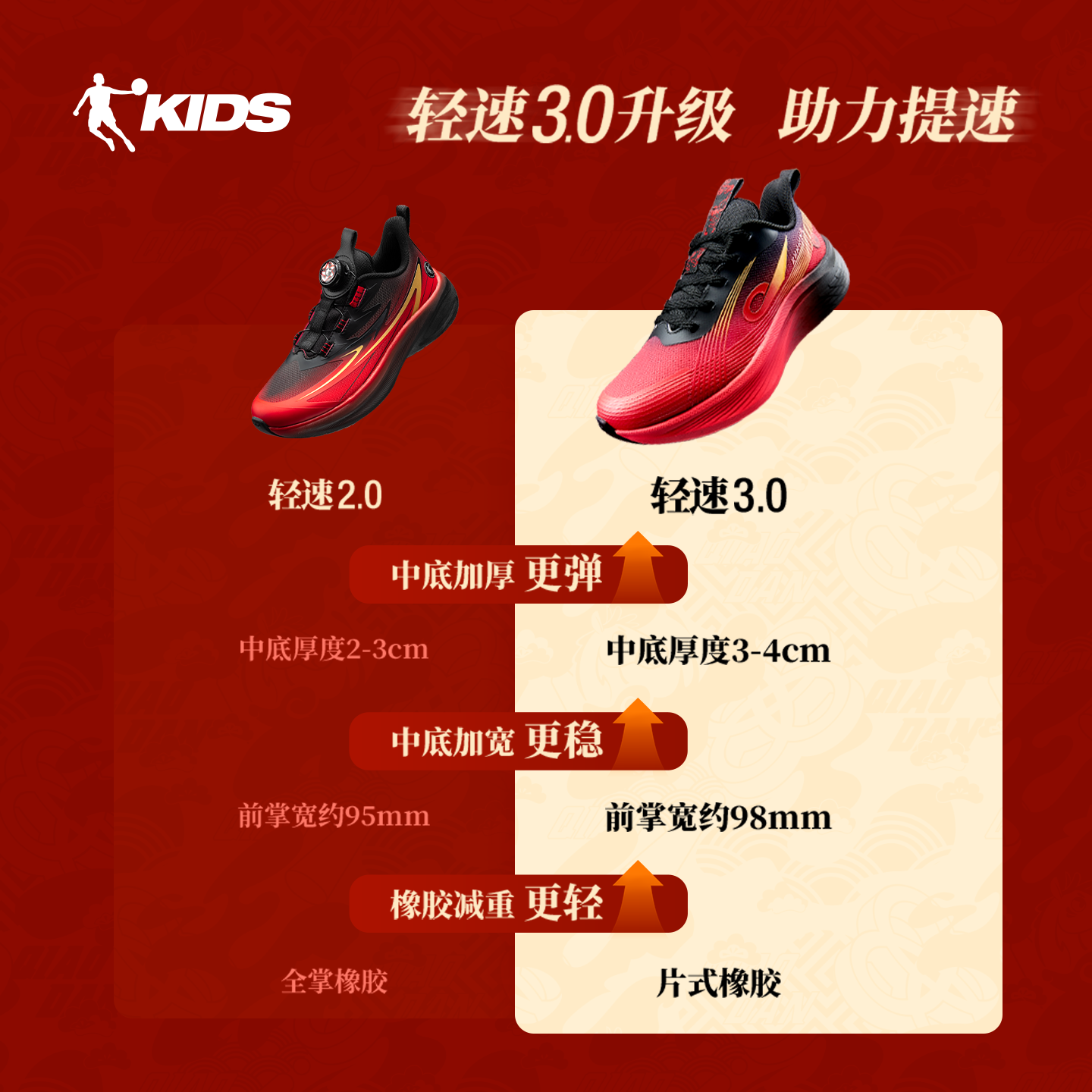 轻速3|马年新款乔丹童鞋男童鞋子跑步鞋2026红色新年鞋儿童运动鞋