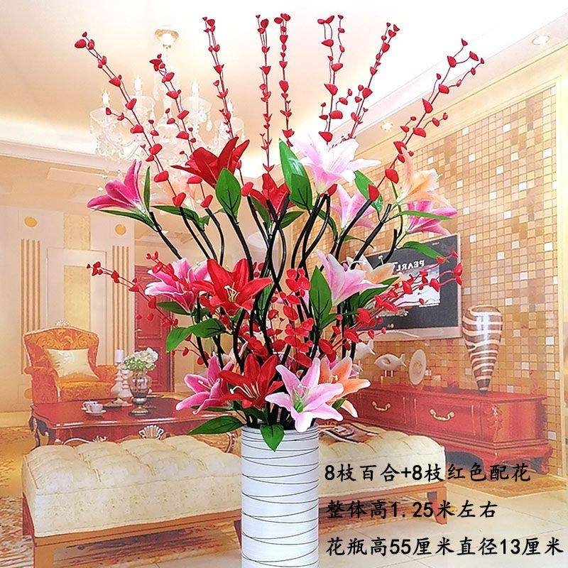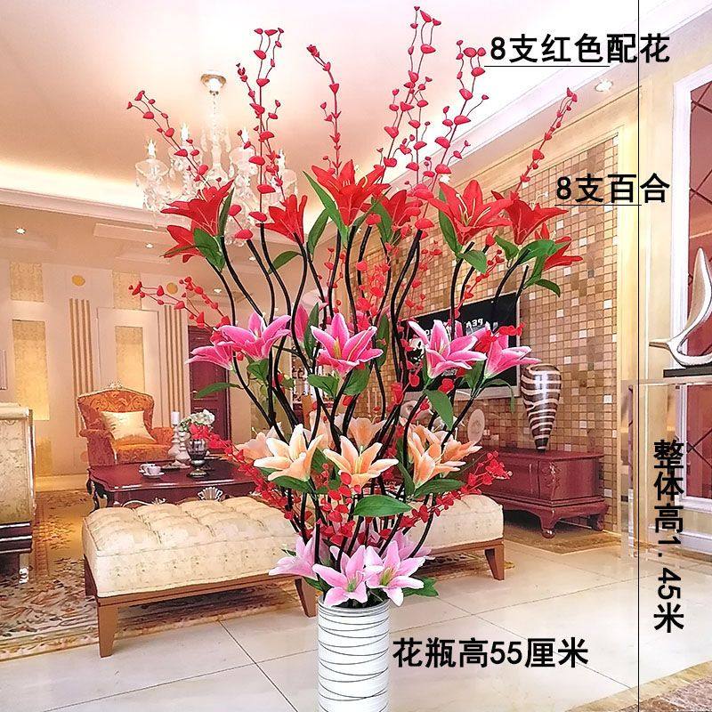 叶脉干花仿真花客厅落地假花百合花玫瑰花郁金香桃花梅花装饰摆件