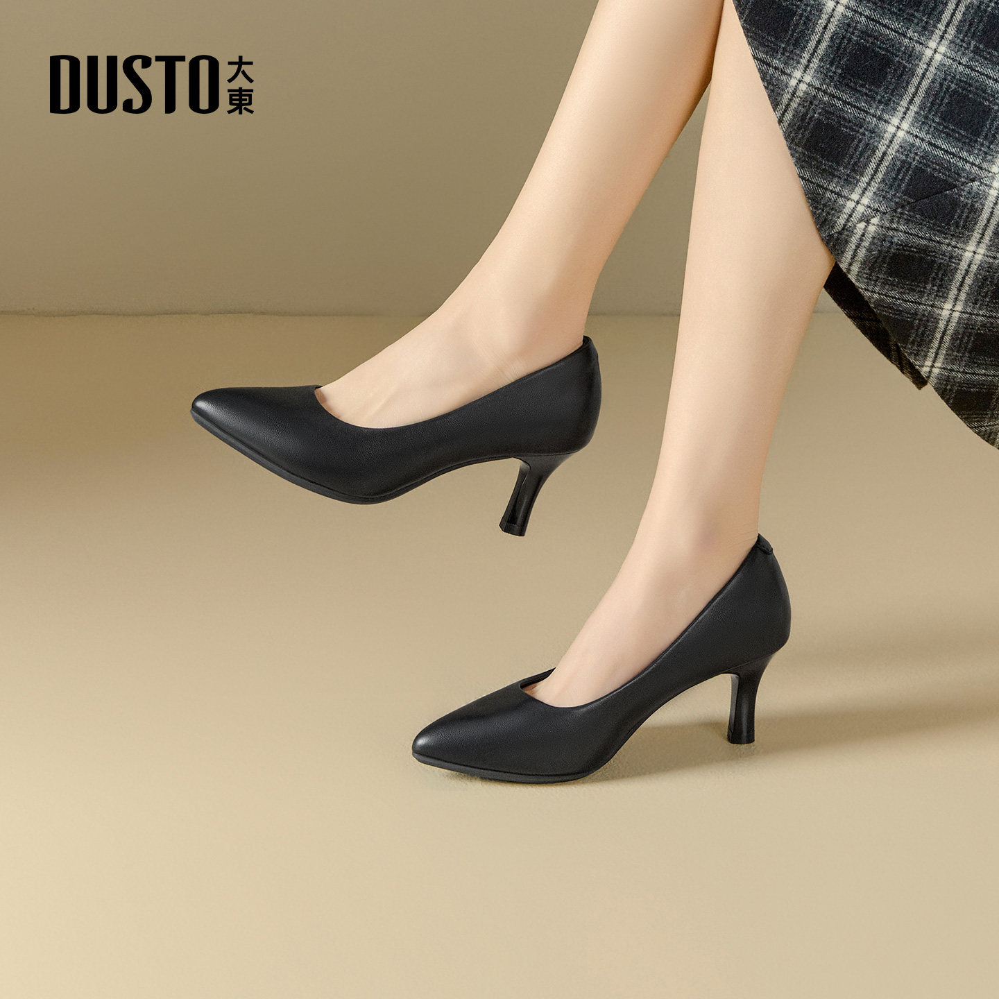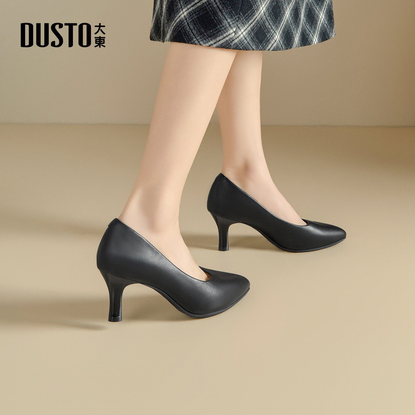 大东黑色细跟尖头高跟鞋女2026新款春季女鞋不累脚工作通勤鞋单鞋