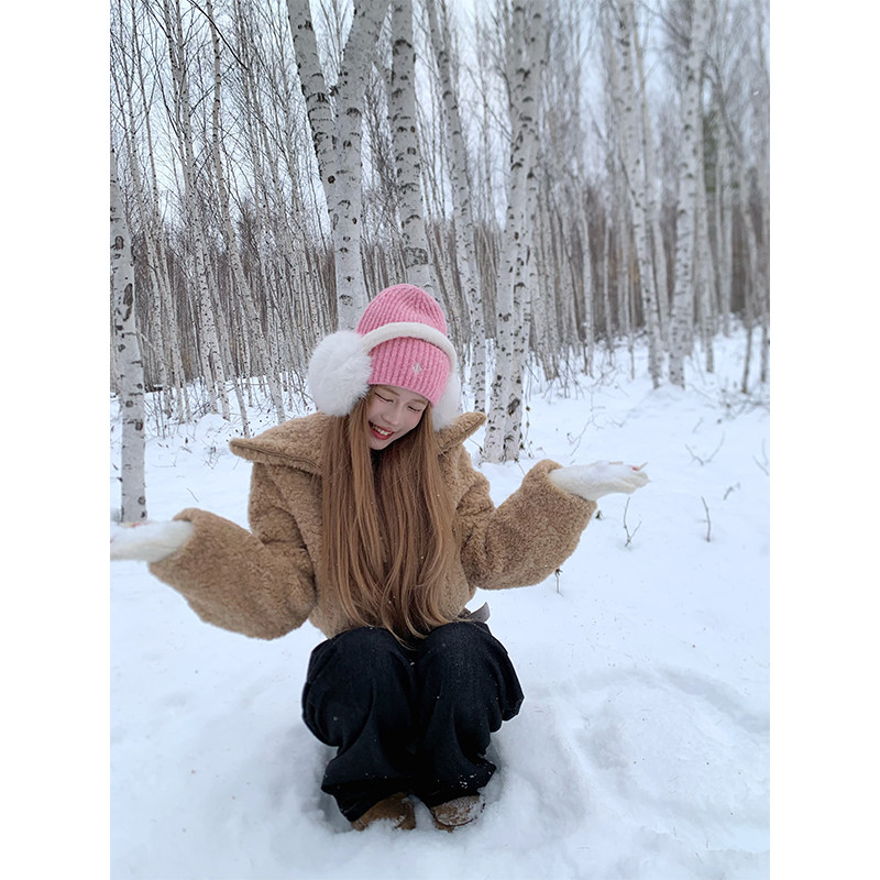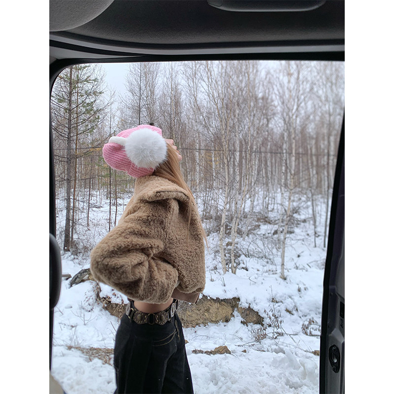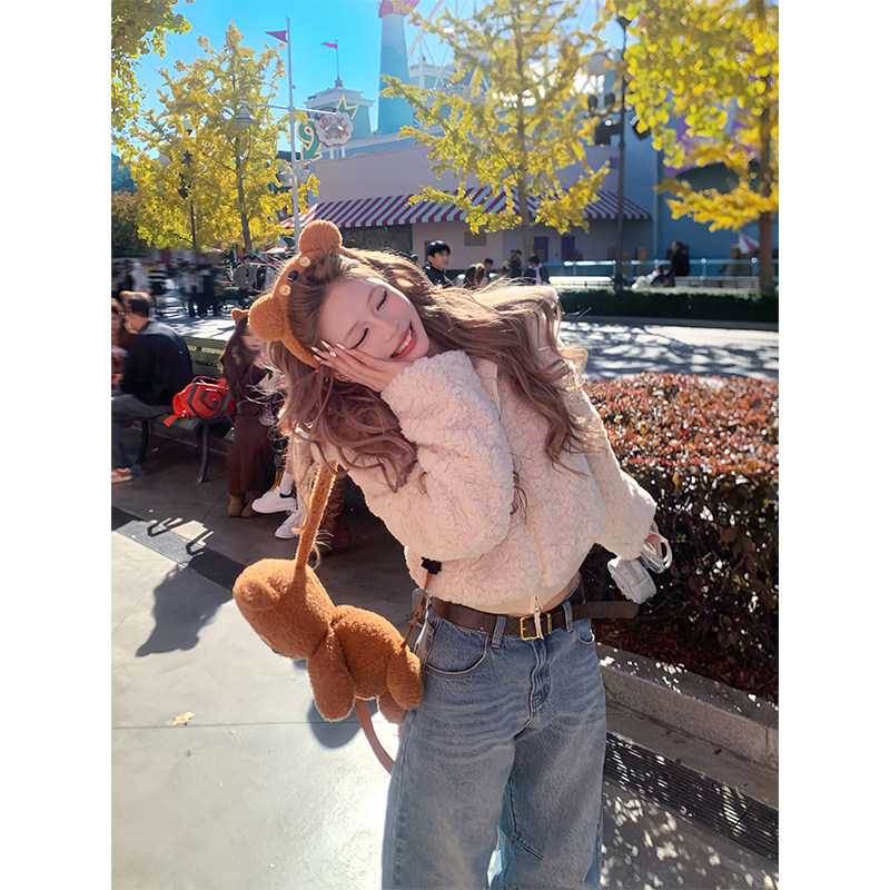 NECOYEP 美式复古立领毛绒短款棉衣女秋冬休闲百搭保暖外套