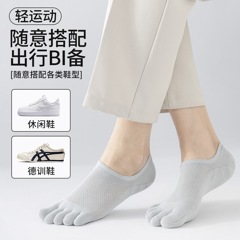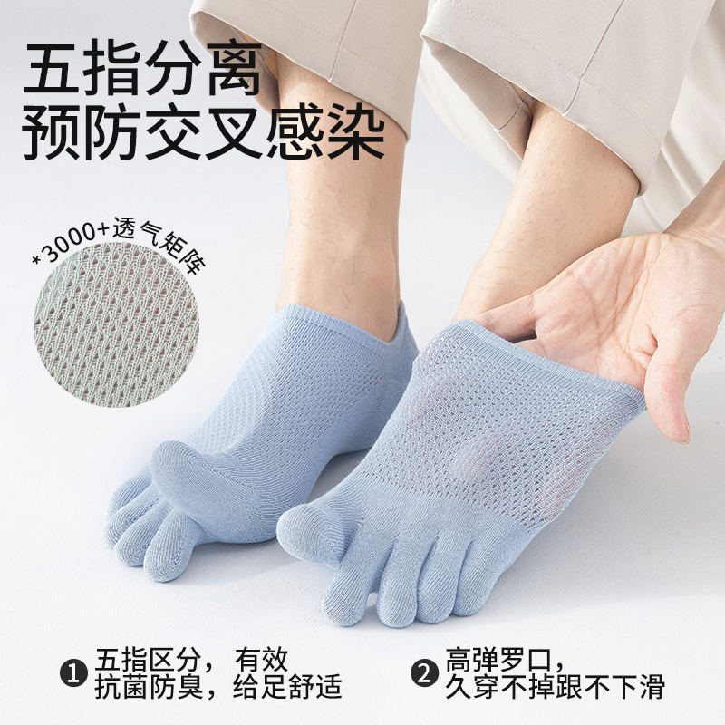 隐形五指船袜男士纯棉夏季薄款抗菌防臭吸汗网眼透气分趾短袜新款
