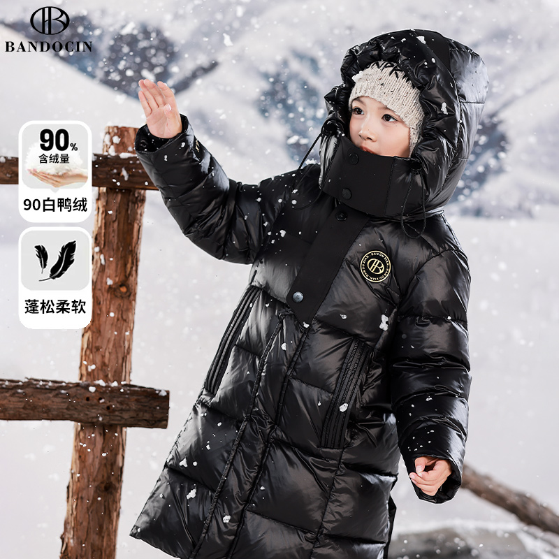 半度闲女童黑金羽绒服冬中长加厚25新款儿童白鸭绒外套