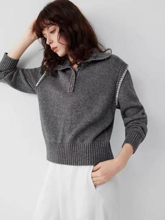 灰色半拉链高领毛衣女秋冬冬季宽松加厚软糯慵懒设计感内搭针织衫