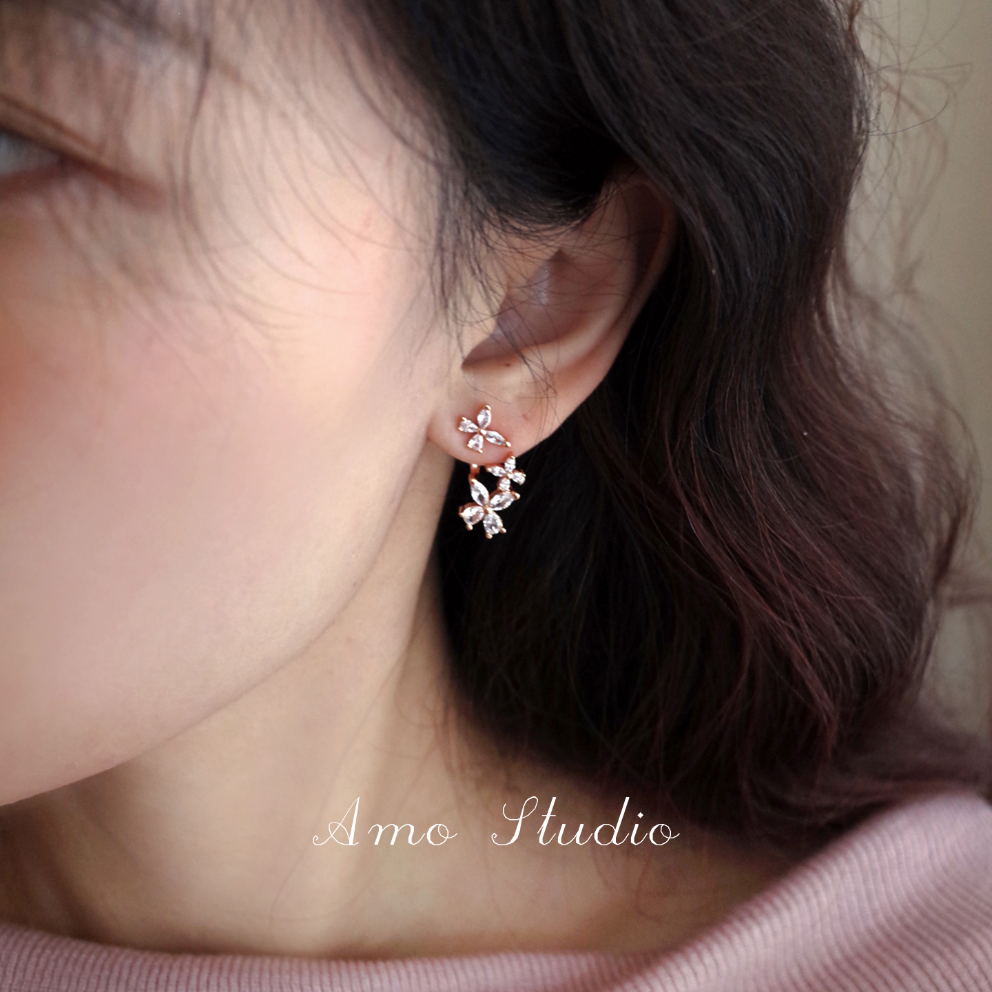 AMO后挂式蝴蝶耳钉两戴甜美气质