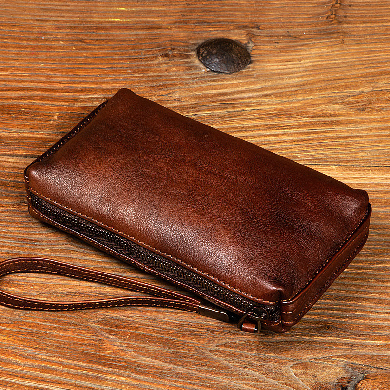 复古手工擦色植鞣皮手包男休闲长款钱包头层牛皮拉链皮夹手拿包软