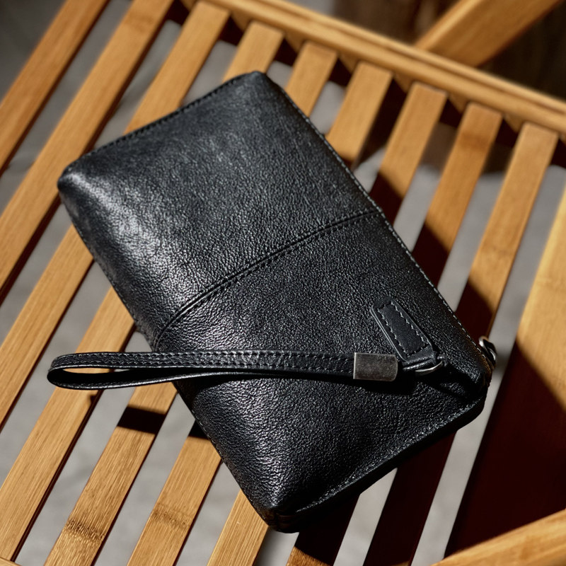 慢时光复古擦色植鞣牛皮手拿包男
