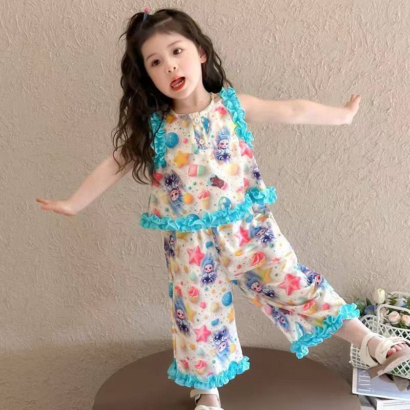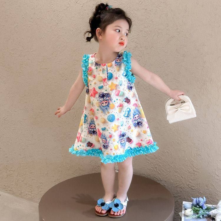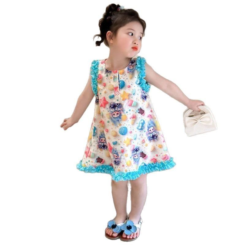 女童夏季敖丙时尚碎花连衣裙2025新款背心洋气甜美可爱无袖套装