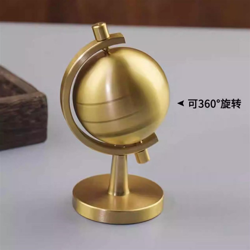 纯黄铜地球仪摆件可旋转可拆卸客厅办公桌装饰摆S设铜器把玩件饰