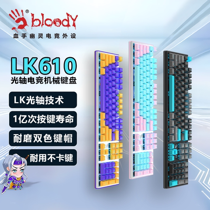 双飞燕血手幽灵LK610机械键盘2代LK光轴青轴电竞游戏键盘金属面板